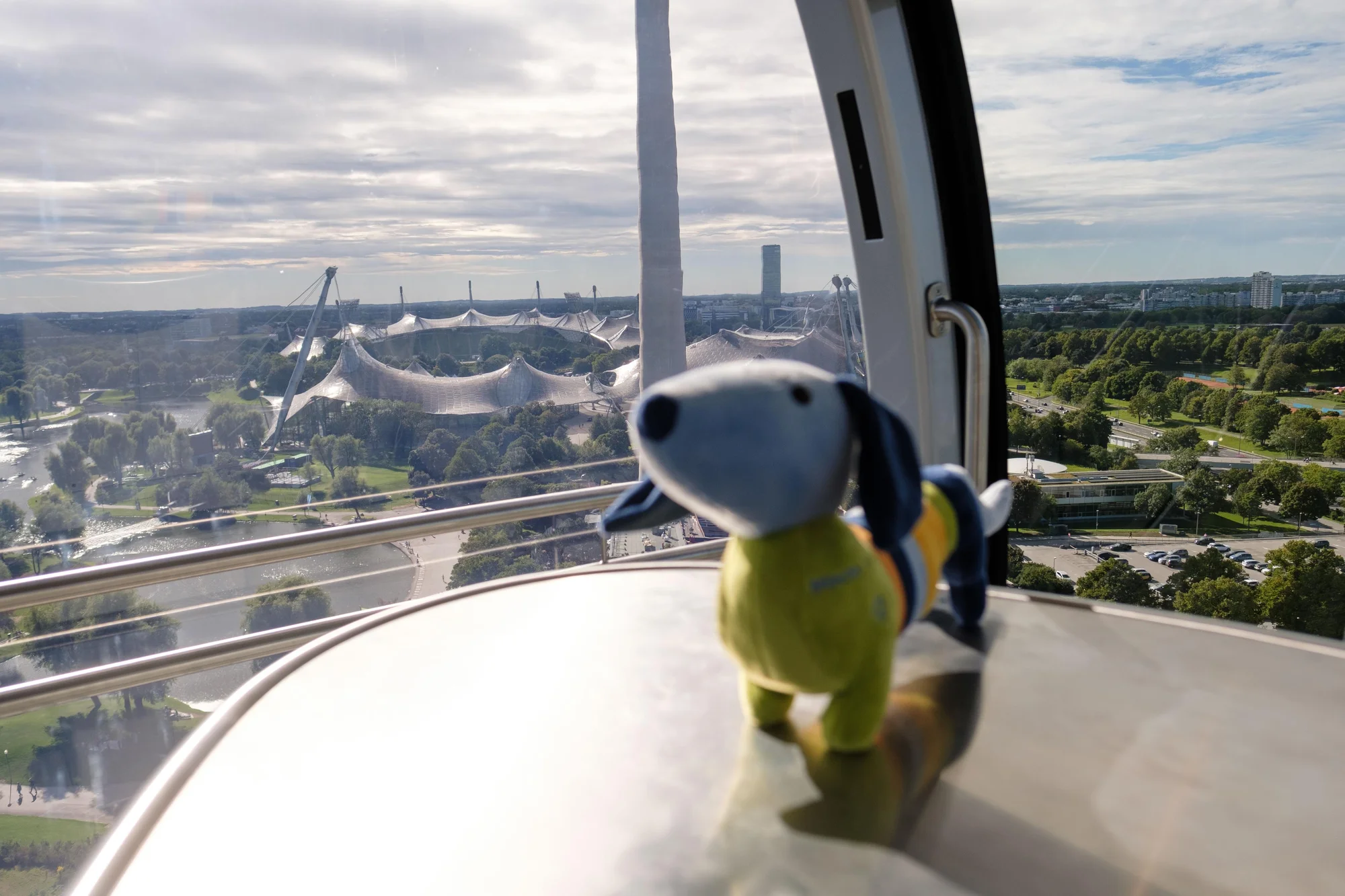 Der Skylift ist die neueste Attraktion im Olympiapark – das Fahrgeschäft vor dem Olympia-Actionsportzentrum, das die Passagiere in seinen vier Gondeln auf 70 Meter Höhe bringt: für einen spektakulären 360-Grad-Blick auf den Park, auf die Stadt und bei guter Sicht bis zu den Alpen. Die Skylift-Tour startet mit kurzen Film-Impressionen zu den Sommerspielen von 1972, gefolgt von einer Übersicht über die Entstehungsgeschichte des Parks anhand des Original-Miniaturmodells der Olympia-Architekten. Nach der Fahrt mit dem Skylift führen die Guides auf einem Spaziergang zu den heute noch immer genutzten Sportstätten und berichten über die Baugeschichte wie auch die Vision von offenen und demokratischen Spielen bei Olympia 1972.