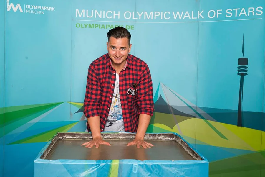 Kurz vor feierlichen Prozedur hatte Andreas Gabalier die Anekdote von Jon Bon Jovi gehört, der 2003 einer der ersten prominenten Künstler auf dem Munich Olympic Walk of Stars wurde. Zu einer Zeit, als Andreas Gabalier mit 19 Jahren gerade auf der Grazer Handelsakademie angefangen hatte, bevor er später ein Jura-Studium begann. Die Fotografen jedenfalls hatten den amerikanischen Star-Rocker damals gebeten, fürs Bild kurz die Sonnenbrille abzunehmen – woraufhin Jon Bon Jovi seine Brille nahm und sie kurz zum Hinterlassen der Konturen in den Zement eintauchte. Dem wollte nun Gabalier in nichts nachstehen, also ließ er sich seine karierte Sonnenbrille bringen und drückte sie fest in den Flüssigbeton. Als ewiges Andenken.