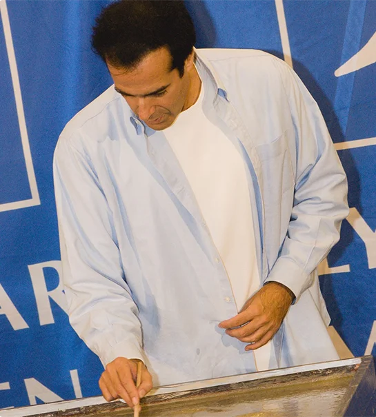 Weder schwebte er ein noch verschwand er plötzlich. David Copperfield war einfach nur Mensch als er im Ehrengastbereich der Olympiahalle seine magischen Hände in den nassen Zement legte.