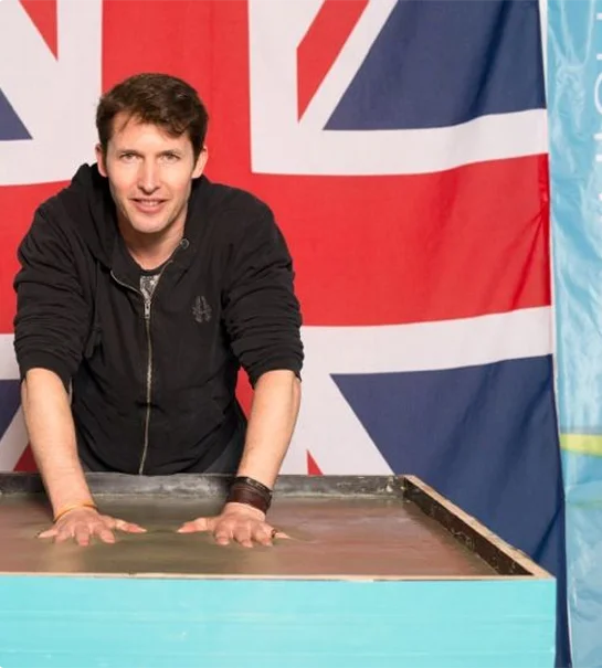 Union Jack und Trachtenhut - das passt zumindest bei James Blunt. Vor seinem immerhin schon vierten Konzert in der Olympiahalle hat der britische "Schmusesänger" seine Hände im Münchner Walk of Stars verewigt.