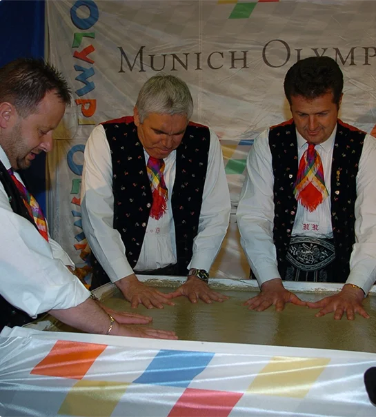 Sieben g´stand´ne Mannsbilder aus Südtirol drückten freudestrahlend ihre Pranken in den Münchner Zement.