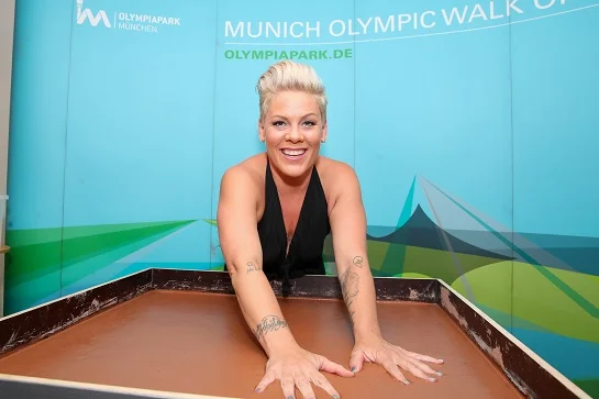 Noch vor ihrem ersten Gig aber nahm sie sich Zeit, nicht nur für eine Stippvisite ins Hofbräuhaus, sondern auch, um sich im Backstage-Bereich des Stadions mit ihren Händen auf dem Walk of Stars zu verewigen. Pink, mit bürgerlichem Namen Alecia Beth Moore, schien sich darüber wie ein kleines Kind zu freuen, gab sich bodenständig und sympathisch, postete das Bild später noch in ihren sozialen Netzwerken und schrieb darunter augenzwinkernd über den Handabdruck im Flüssigzement: „Sie ließen mich im Dreck spielen und schenkten mir einen Cookie.“ Hat sie sich auch verdient. Lebkuchenherz, wem Lebkuchenherz gebührt.