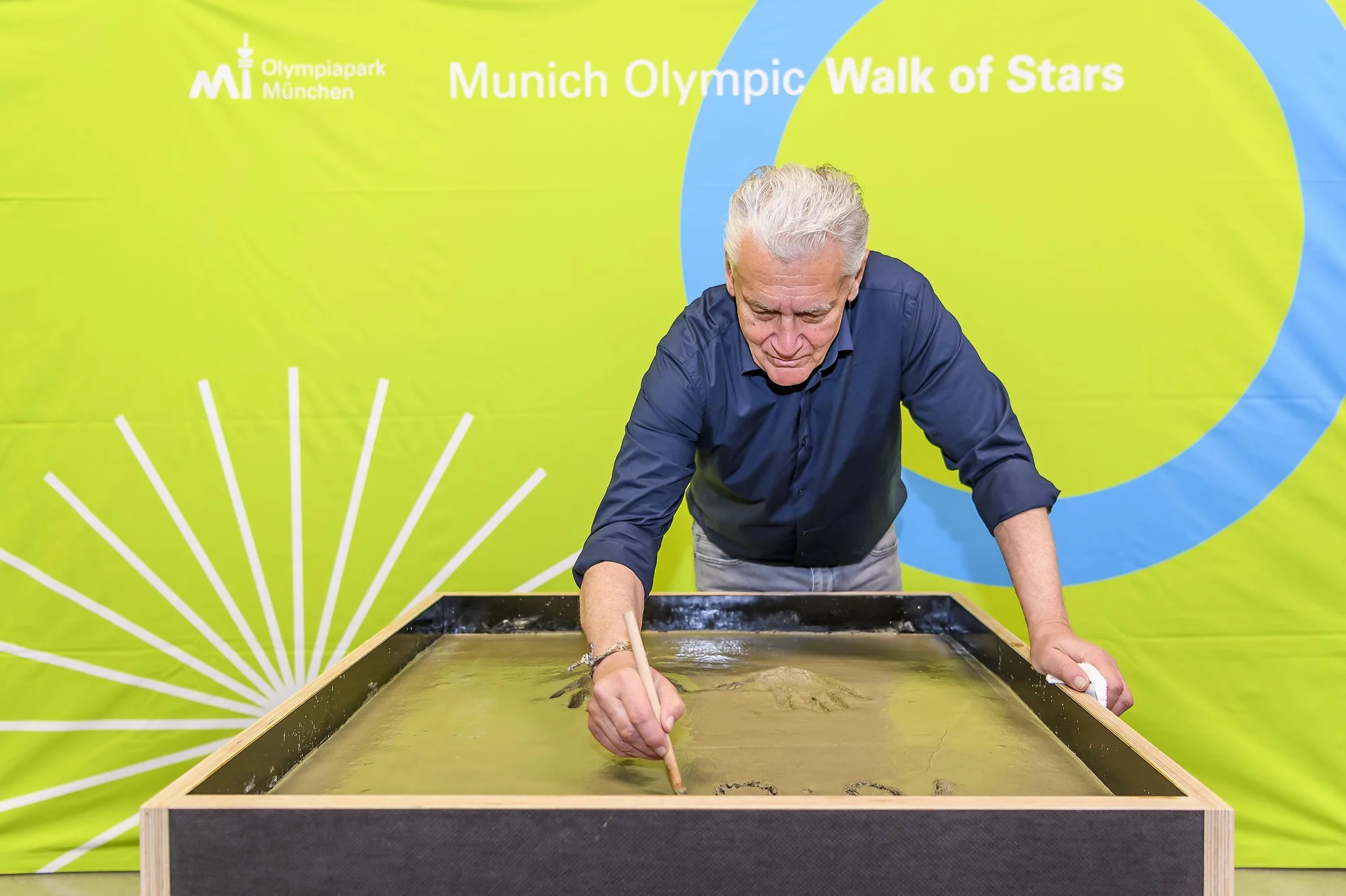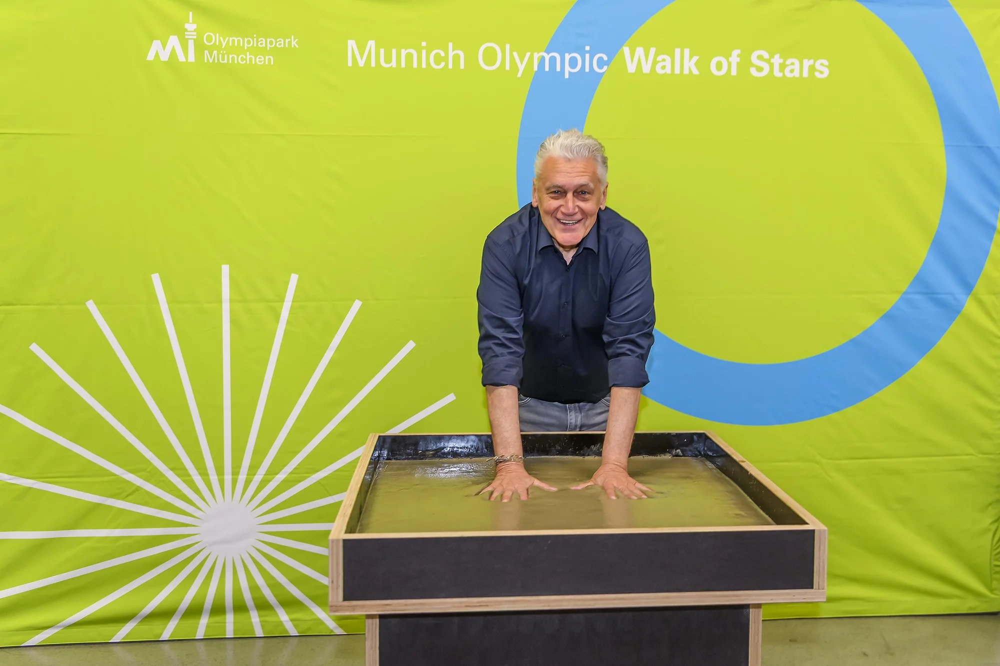 Zur feierlichen Zeremonie rund um seinen ausverkauften Auftritt im Rahmen seiner „Wimpernschlag“-Tour erschien die österreichische Pop-Legende pünktlich und in bester Laune: nett, nahbar und sympathisch. Das gesamte MOWOS-Team wurde per Handschlag begrüßt, humorvoll und mit dem ihm eigenen Wiener Schmäh. Dass er statt dem 16. April fälschlicherweise erst den 6. April als Datum in den Flüssigbeton schrieb, nebensächlich. In den Gatsch (österreichisch für: Schlamm, Matsch) zu greifen, darin hat Fendrich übrigens bereits Übung. 2011 hinterließ er – damals als 100. Künstler – seine Handabdrücke auch auf dem Walk of Stars am Wiener Gasometer. Nun hat er seinen Ehrenplatz auch im Olympiapark.