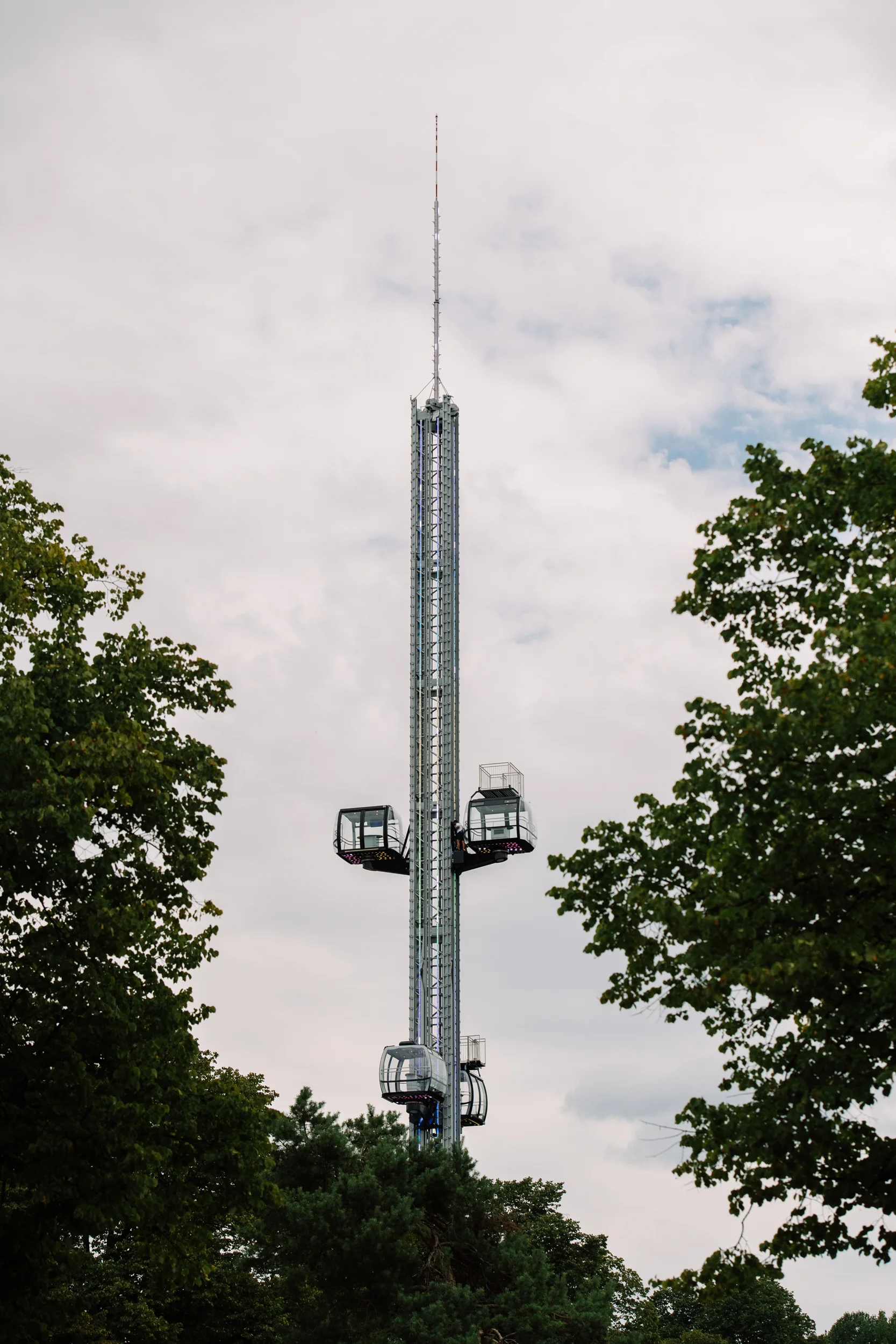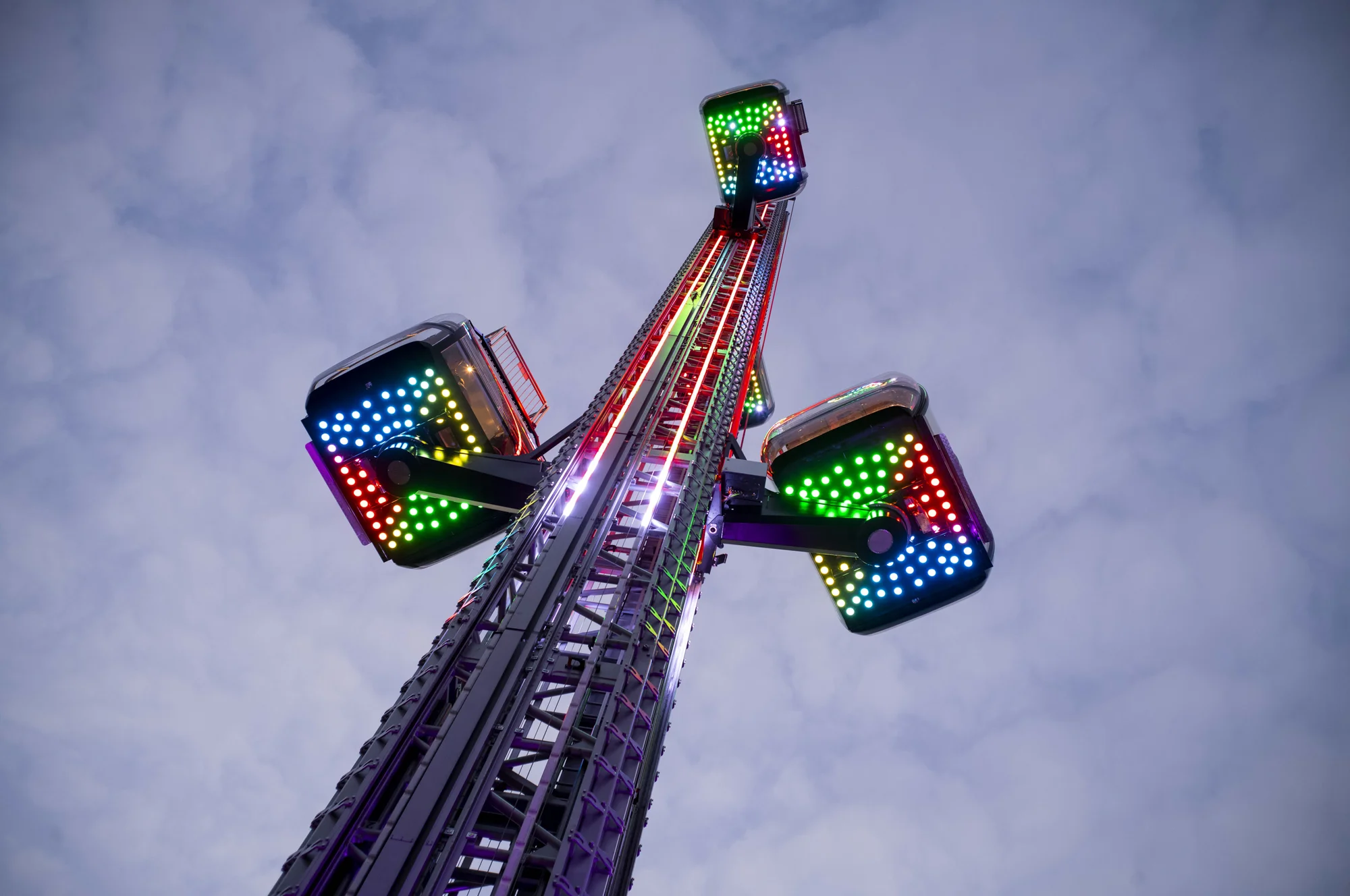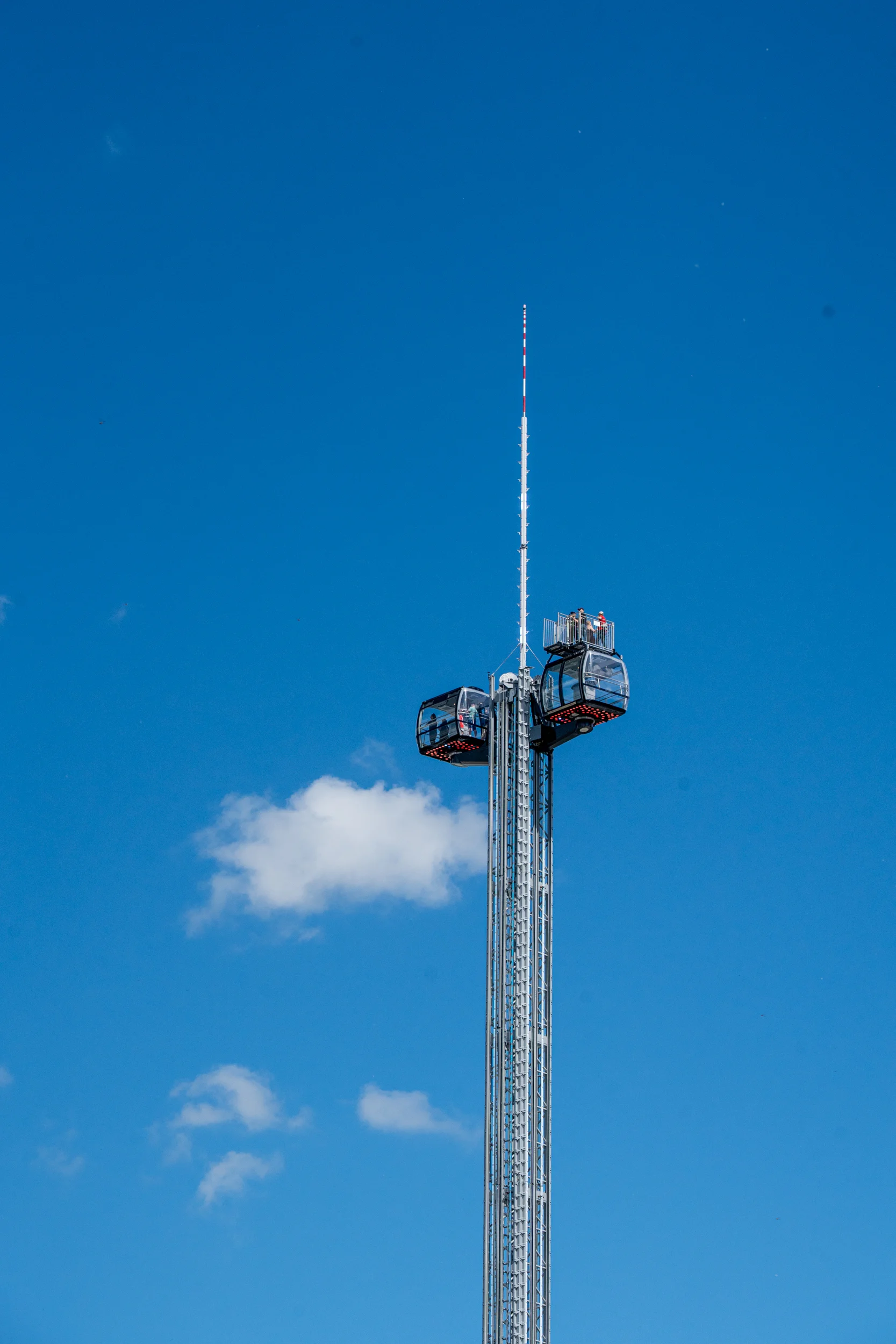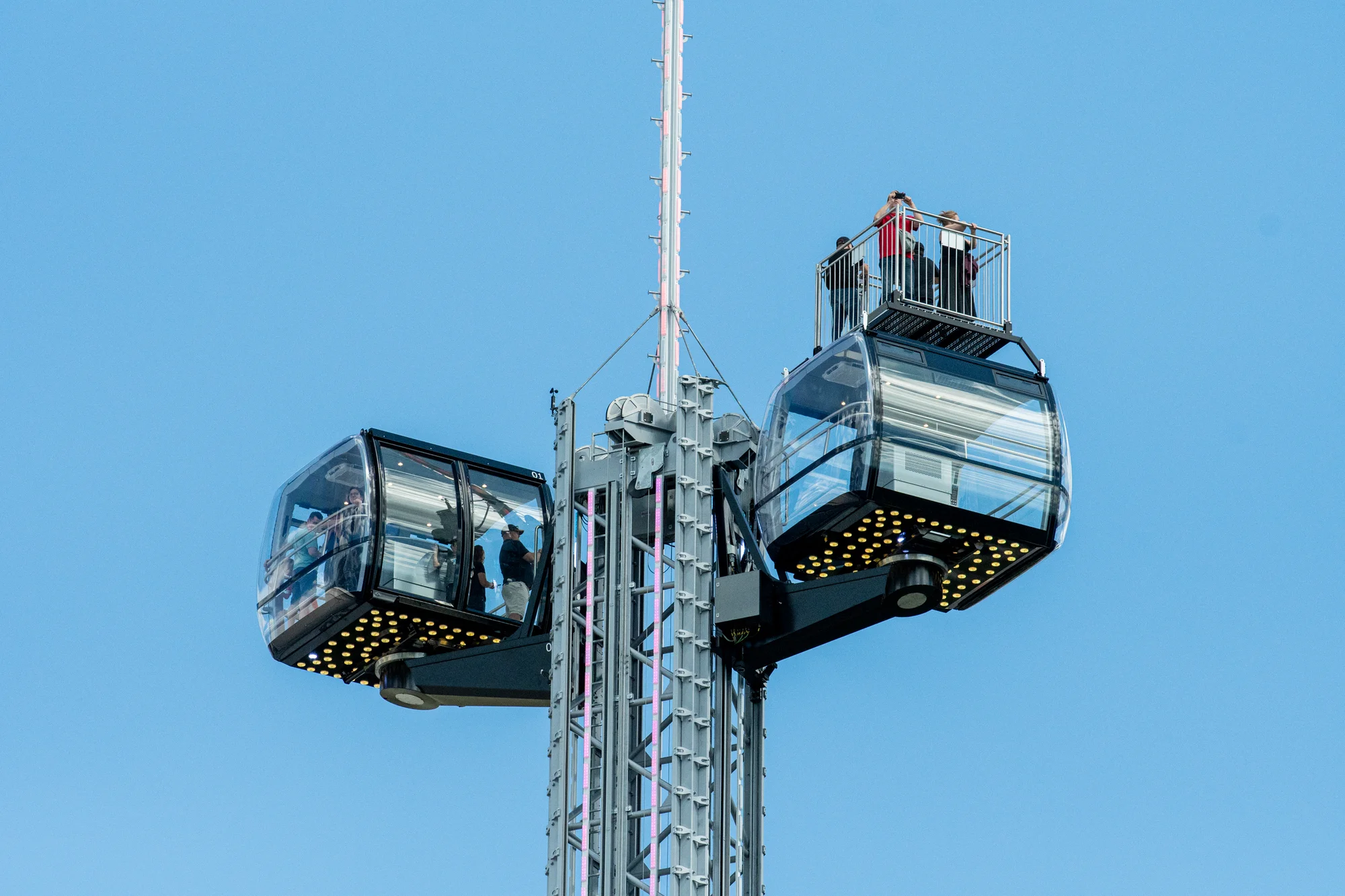 Auf der Fahrt nach oben wie auch nach unten drehen sich die Gondeln dabei um die eigene Achse und sorgen für eine 360-Grad-Perspektive, ohne dass man den Platz verlassen muss.