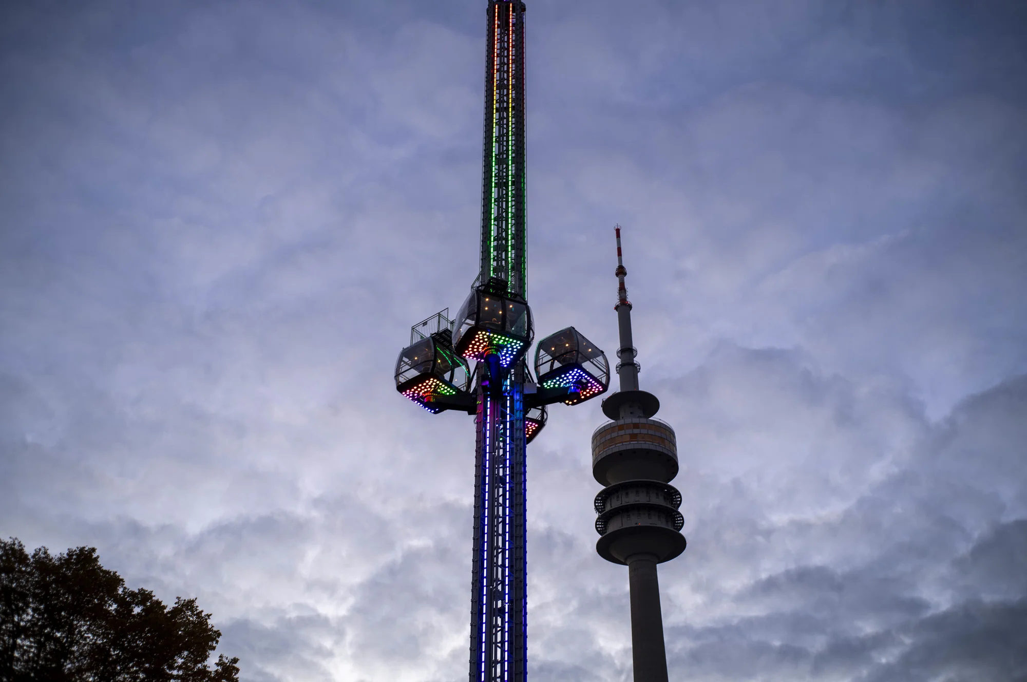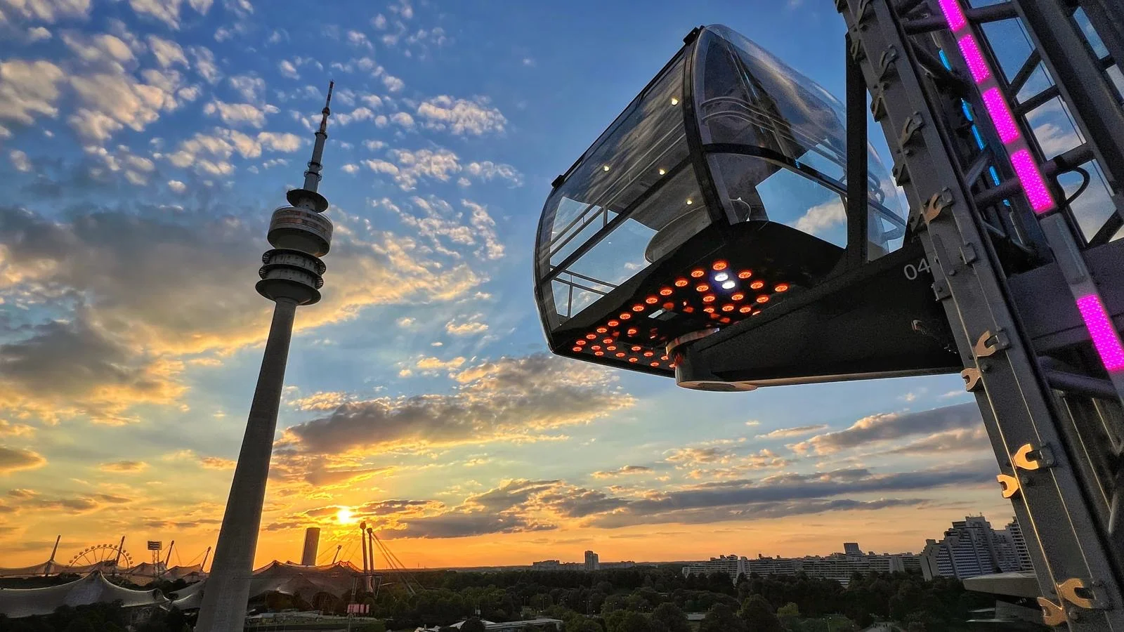 Wer während der sanierungsbedingten Schließung des Olympiaturms nicht auf eine atemberaubende Aussicht verzichten möchte, ist hier genau richtig. Dank ihrer entspiegelten Verglasung bieten die vier Gondeln des Skylifts mit einer Kapazität von jeweils 20 Plätzen einen ungetrübten und phänomenalen Panorama-Blick über den Olympiapark.