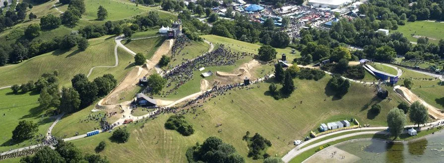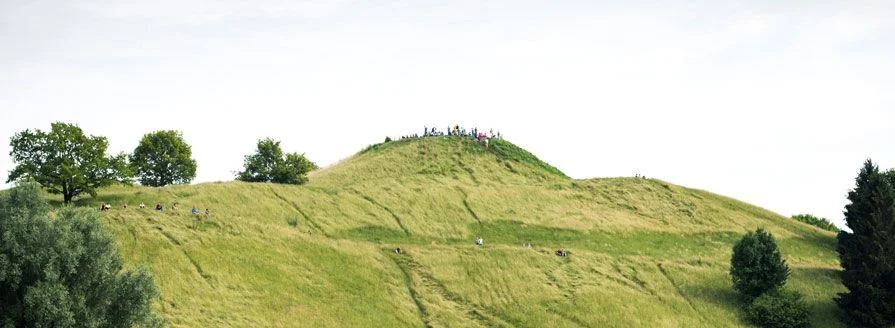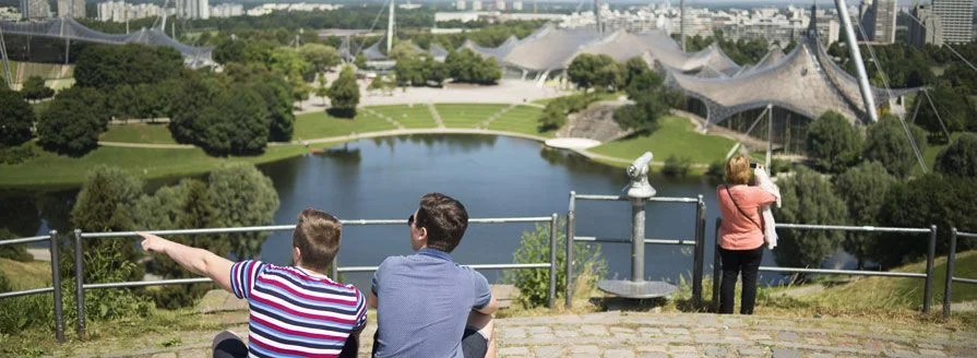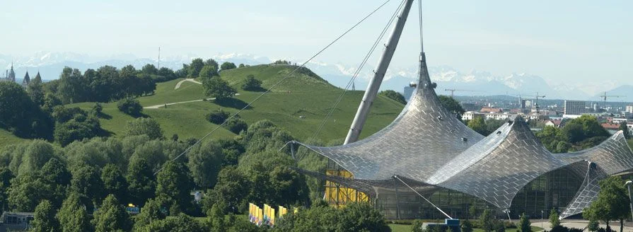 Der Olympiaberg ist ein Muss für jeden Besucher des Olympiaparks. Als eine der höchsten Erhebungen Münchens bietet er von seinem Gipfel aus nicht nur einen wunderbaren Blick auf das zu seinen Füßen liegende Olympiastadion und auf die atemberaubende Zeltdach-Architektur des gesamten Olympiaparks – der Aufstieg lohnt sich auch für die Aussicht auf die Silhouette der Stadt und das imposante Panorama der bayerischen Alpen dahinter.