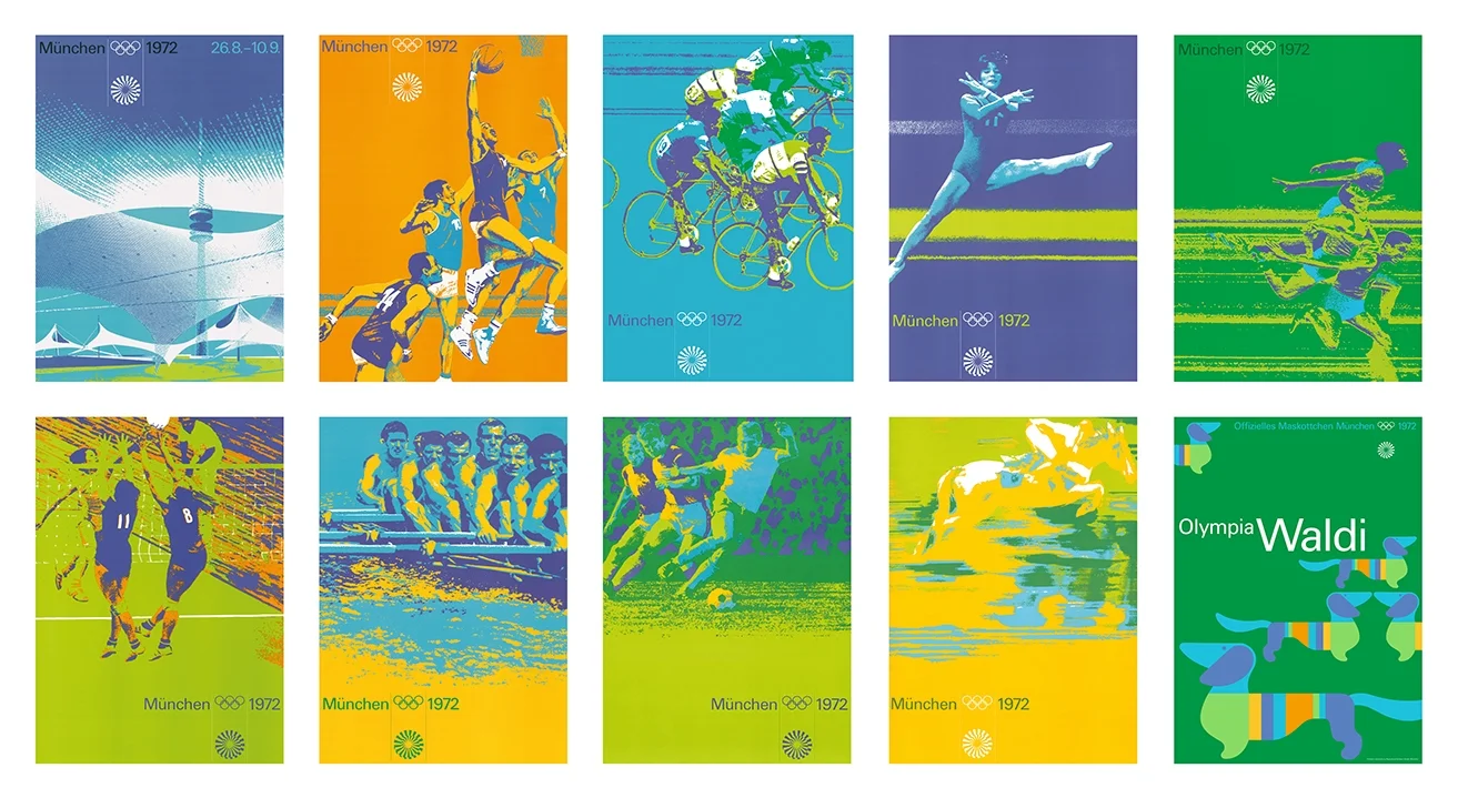 Heiter sollten sie wirken. Leicht. Unbeschwert. Die Farben, die Otl Aicher und sein Designer-Team für die Sommerspiele von München entwarfen. Luftige Pastelltöne als Gegensatz zum martialischen Bombast-Design von Hitlers Nazi-Spielen 1936 in Berlin. In einer Fabrikhalle in Garching-Hochbrück tüftelte Aichers Grafiker-Team an der optischen Corporate Identity der Spiele von 1972. Und genau an diesem Erscheinungsbild, so beschloss es das OK, sollte sich auch die Sportposterserie orientieren, mit der jede der 21 olympischen Sommersportarten beworben werden sollte. Anlässlich des 50. Jubiläums hat die Olympiapark München GmbH zehn der 21 Motive in lizensierter und limitierter Auflage nachgedruckt und bietet diese im Souvenirshop im Olympiaturm sowie im Olympiapark-Webshop zum Einzelpreis von 14,95 Euro an.
