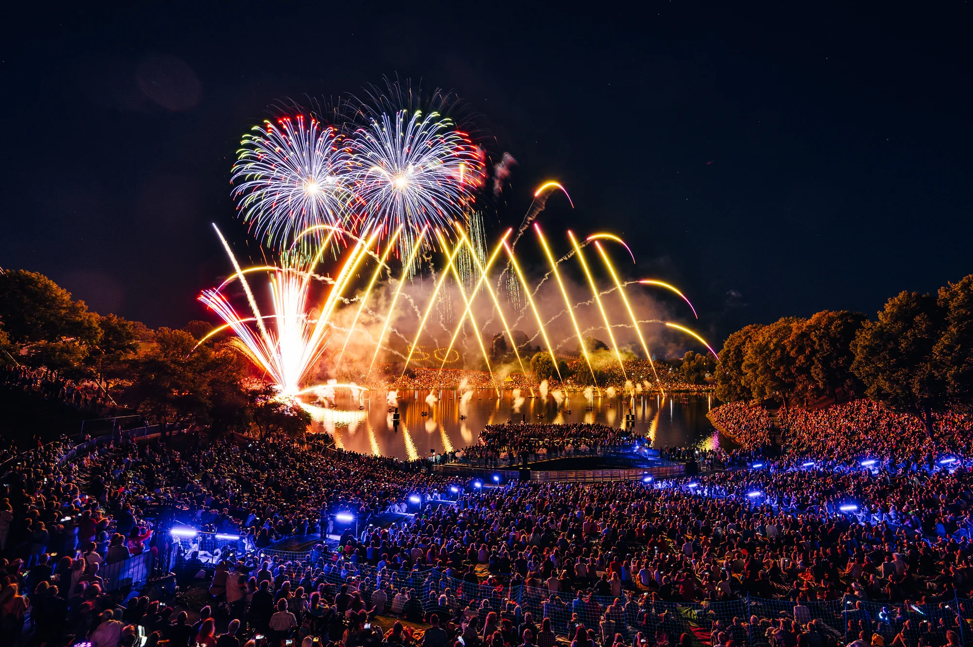 Bei strahlend blauem Himmel und einer Traumkulisse sangen sich Silbermond, Culcha Candela und Paul Kowol in die Herzen der 34.000 Besucher:innen, 2raumwohnung, Lizki und die HyTop DJs sorgten für alternativen Sound auf dem Sommernachtstraum 2022. Sie alle stimmten auf das lang ersehnte Jubiläumsfeuerwerk ein.