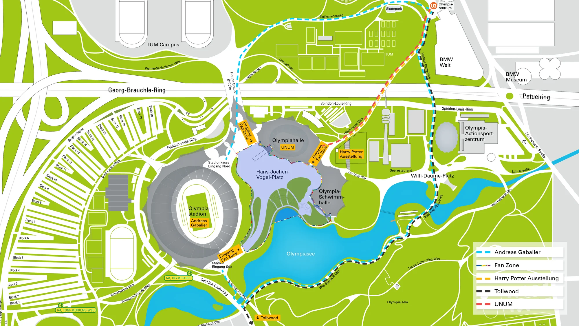 „Der Olympiapark wird am Samstag einmal mehr zum echten Hotspot. Um den Zehntausenden Besucher:innen eine möglichst gute und stressfreie Anreise zu ermöglichen, werden wir sowohl über eine entsprechende Beschilderung als auch mit Ordnungspersonal unsere Gäste gleich ab der U-Bahn-Station Olympiazentrum zu ihrer Veranstaltung in den einzelnen Locations des Olympiaparks lenken“, so Olympiapark-Chefin Marion Schöne. Zudem sind die Zeiten der Veranstaltungen so abgestimmt, dass auch das Ende der Events zeitversetzt stattfinden wird.