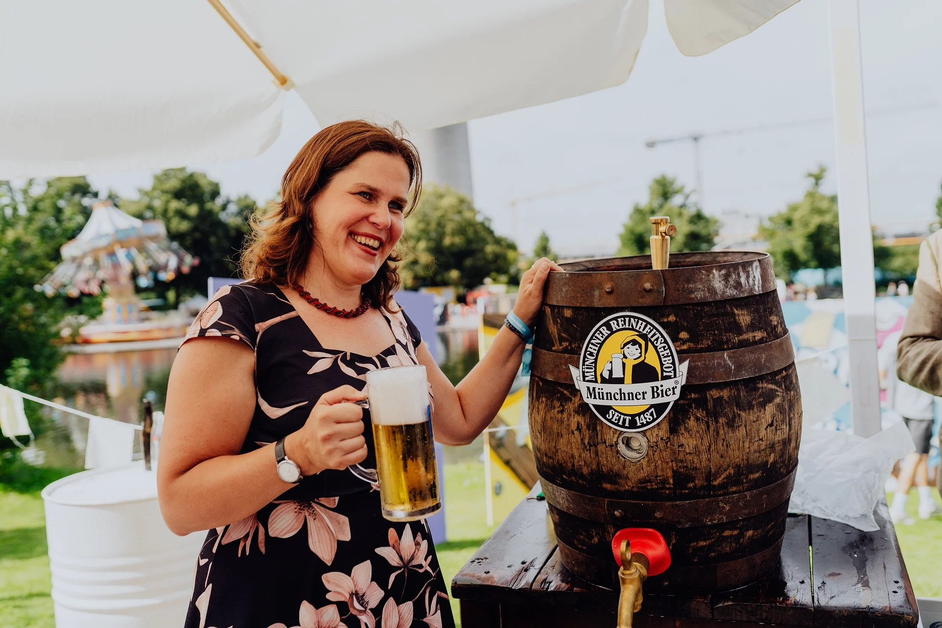 Sie brauchte nur zwei Schläge, dann hieß es: „O’zapft is!“. Bürgermeisterin Verena Dietl eröffnete als Schirmherrin das Sommerfestival. Zusammen mit dem stellvertretenden Geschäftsführer der Olympiapark München GmbH, Nils Hoch, sowie dem Geschäftsführer der VMS Veranstaltungsgesellschaft der Münchner Schausteller GmbH, Robert Eckl, zapfte sie die erste Maß der „kleinen Wiesn“, wie das Sommerfestival früher gerne liebevoll genannt wurde. „Ich freue mich auf das Sommerfestival. Es ist eine feste Größe und ein tolles Angebot für die Münchner Familien, die ihre Ferien zuhause verbringen, aber auch eine Attraktion für die Touristen, die den Park besuchen. Das Programm ist bunt und vielfältig und es gibt jede Menge zu erleben“, so Bürgermeisterin Verena Dietl.