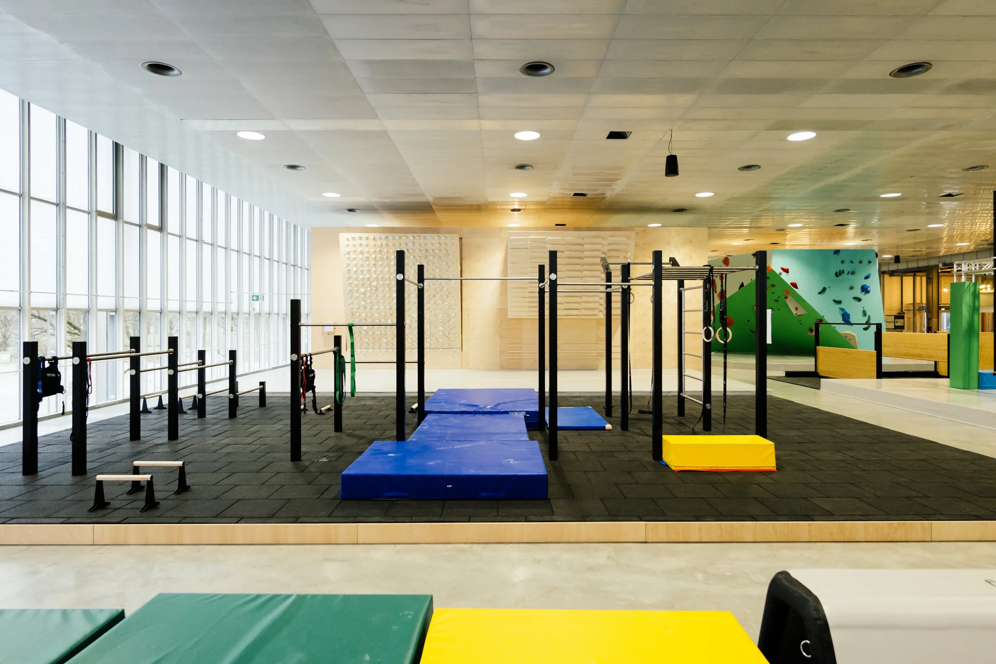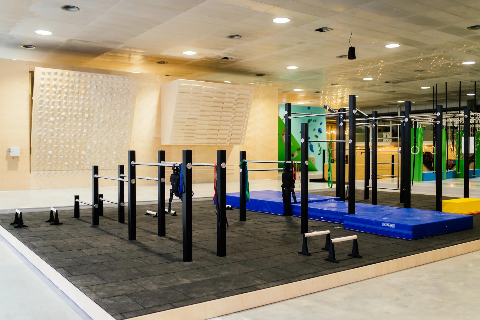 Ein entscheidender Vorteil gegenüber Outdoor-Parks auf Beton oder Rindenmulch ist der Bodenbelag im MAP. Der gesamte Bereich ist mit professionellen Sportböden und teilweise Matten ausgelegt.