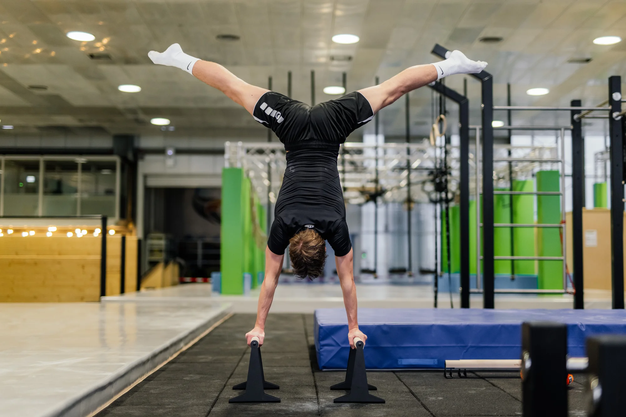 Kein Calisthenics-Training ohne Dips. Dafür stehen stabile Barren zur Verfügung. Diese sind ideal, um Brust-, Schulter- und Trizepsmuskulatur zu stählen. Fortgeschrittene nutzen die Parallel Bars auch für statische Halteübungen wie den L-Sit, Planche oder den Handstand.