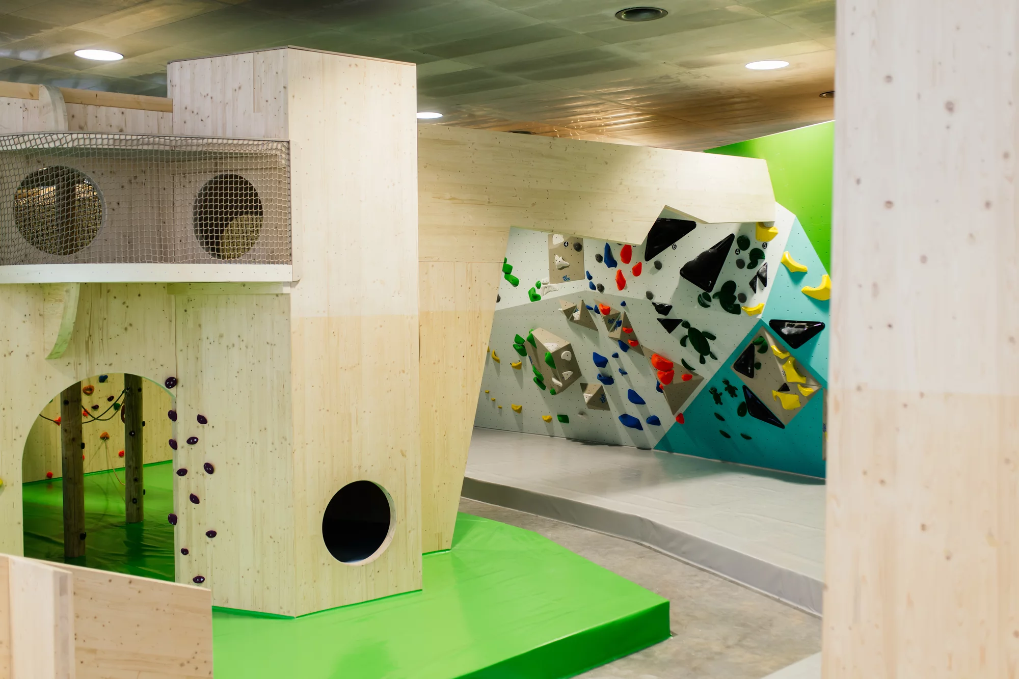 Der Kinderbereich ist für Kinder ab 3 Jahren konzipiert. Ein absolutes Highlight ist die speziell für Kinder konzipierte Boulderwand mit Routen bis zu 3,50 m Höhe. Hier können die Kids ihre ersten Routen meistern und den Sport austesten.