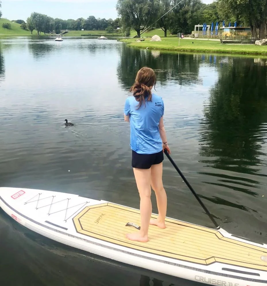 In der Stunde gibt Dir unser Trainer eine Anleitung rund ums Board und dann paddelt ihr zusammen auf den Olympiasee. Du erlernst die Stand Up Paddling Grundtechniken und genießt dabei die wunderbare Kulisse des Olympiaparks.
