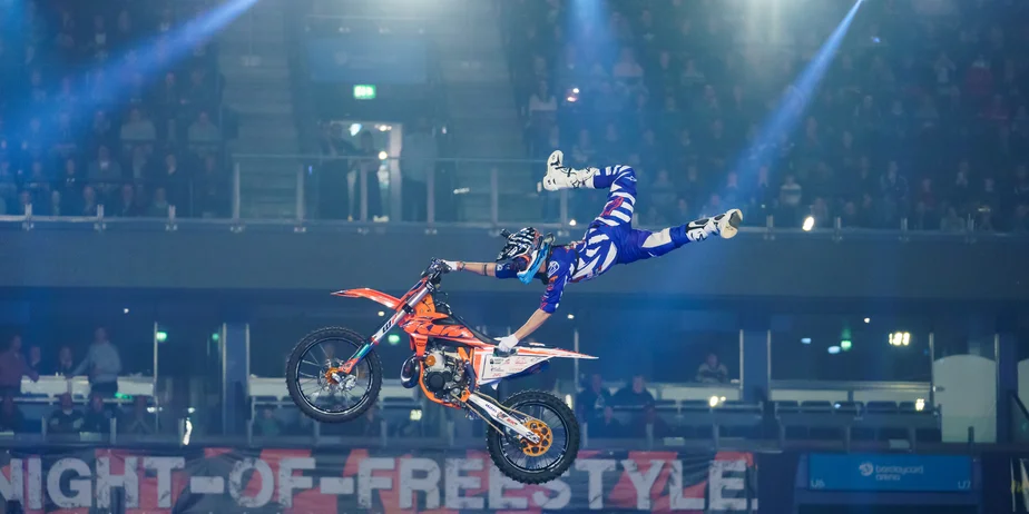 Das Event im Januar 2025 war wie so oft bei den vergangenen Freestyle-Nächten ein Spektakel der Extraklasse. Mit dabei bei einer der legendärsten Extremsport-Veranstaltungen der Welt war natürlich wieder Luc Ackermann – der Motocross-Freestyler, dem einst als jüngstem Freestyler aller Zeiten mit zwölf Jahren ein Backflip auf dem Motorrad gelang. Diesmal begeisterte er mit einem famosen Double Backflip. Ein weiteres Highlight war der Triple Backflip des deutschen Mountainbike-Talents Maximus Wielopolski. Dazu gesellten sich weitere grandiose Tricks: Seitenwagen-Kultpilot Jason van Daele demonstrierte einen Backflip ebenso wie Jason Cesco und Vinnie Janssens, denen der weltweit erste Tandem Snowmobile Backflip gelang. Für eine Sensation sorgte der spanische Freestyle-Motocross-Rookie Pablo Pacheco. Er performte auf einem E-Bike einen Suicide No Hand Front Flip – und das alles natürlich den ganzen Abend über wie immer garniert mit einer bunten Laser- und Pyro-Show.