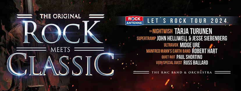 2010 feierte „Rock meets Classic“ als alljährlich wiederkehrende Tour seine Premiere. Hauptacts der Debütshow waren mit Lou Gramm, Bobby Kimball und Dan McCafferty die Sänger von Foreigner, Toto und Nazareth. Seitdem las sich die Liste der Top-Acts jedes Jahr wie ein Who is Who der Rockgeschichte: Von Ian Gillan bis Alice Cooper, von Rick Springfield bis Gianna Nannini. Auch 2024 ist das Line-Up fulminant. So dürfen sich die Fans auf Tarja Turunen als Headliner freuen. Die Sängerin der finnischen Symphonic-Metal-Superstars von Nightwish passt aufgrund ihrer Opern-Ausbildung und ihrer fantastischen Stimmfarbe perfekt zu Rock meets Classic.