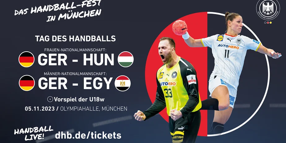 Am 5. November wird München erstmals Schauplatz für die fünfte Auflage des "Tag des Handballs". Dabei treffen in der Olympiahalle die deutschen U18-Juniorinnen auf die Türkei, das A-Team der Frauen misst sich drei Wochen vor der WM mit Ungarn. Gegner der Männer-Nationalmannschaft wird der Afrika-Meister und diesjährige WM-Viertelfinalist Ägypten. Für die Truppe von Bundestrainer Alfred Gislason ein echter Härtetest, zwei Monate vor Beginn der EM in Deutschland – und für das Münchner Publikum der richtige Vorgeschmack auf das Heim-Turnier im Januar 2024, bei dem die Olympiahalle Austragungsort von zwölf Vorrundenspielen sein wird.