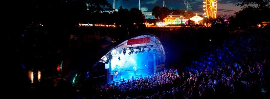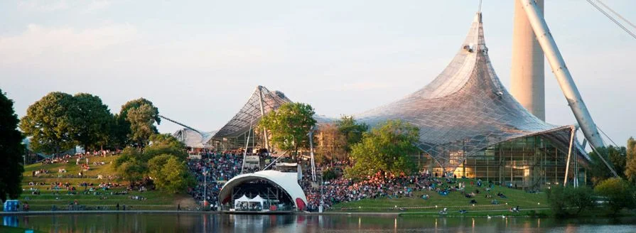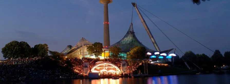 During the summer months the amphitheater with its stage on the shore of the Olympic Lake changes into one of Munich’s most atmospheric places. During the Summer Games 1972 the Theatron had already been the location of the cultural support programe with various events in music, dance and theatre. Today in the summertime every evening numerous national and international acts play Open-Air-Concerts for free. For some bands - who should sell out the Olympic Hall a couple of years later – the Theatron was a big steppingstone for their later career like the Scorpions or the Munich band “Sportfreunde Stiller”.