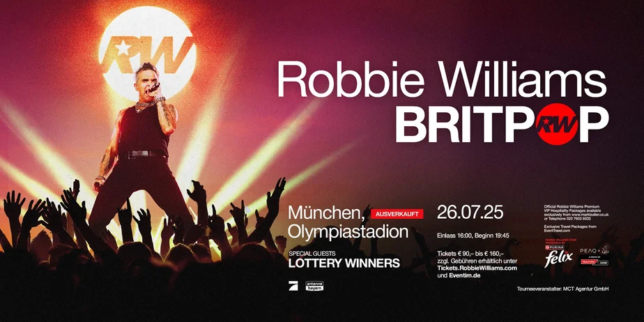 In 2001, following his split from Take That, he performed solo in the Olympic Hall for the first time, followed two years later by his open-air debut in the Olympic Stadium. Then in 2006 came the epochal triple in the history of the Olympic Park, when Williams electrified 70,000 fans on three consecutive evenings at the beginning of August. Robbiemania was at its peak. After the revival show with Take That in 2011, Robbie Williams returned solo under the tent roof in 2013 and 2017 - only to provide another huge open-air spectacle on 26 July 2025 with the same overwhelming energy. Robbie is back! Let him entertain us!