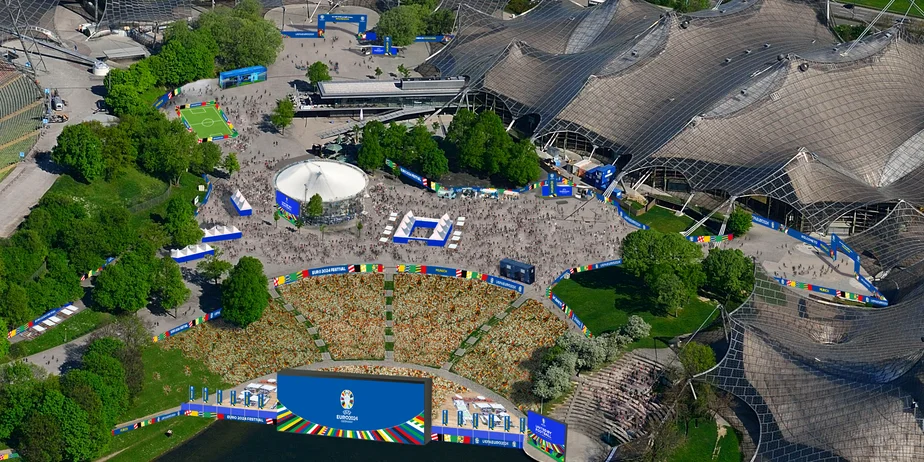 The location itself is a guarantee for the success of the Fan Zone, which can accommodate 25,000 visitors during the European Championships. The Olympic Park has been home to national and international football for over three decades - including the 1974 World Cup and the 1988 European Championships. It celebrated its premiere as an official fan meeting point at the 2006 World Cup and also thrilled tens of thousands of fans with a wonderful football party at the 2012 Champions League final.