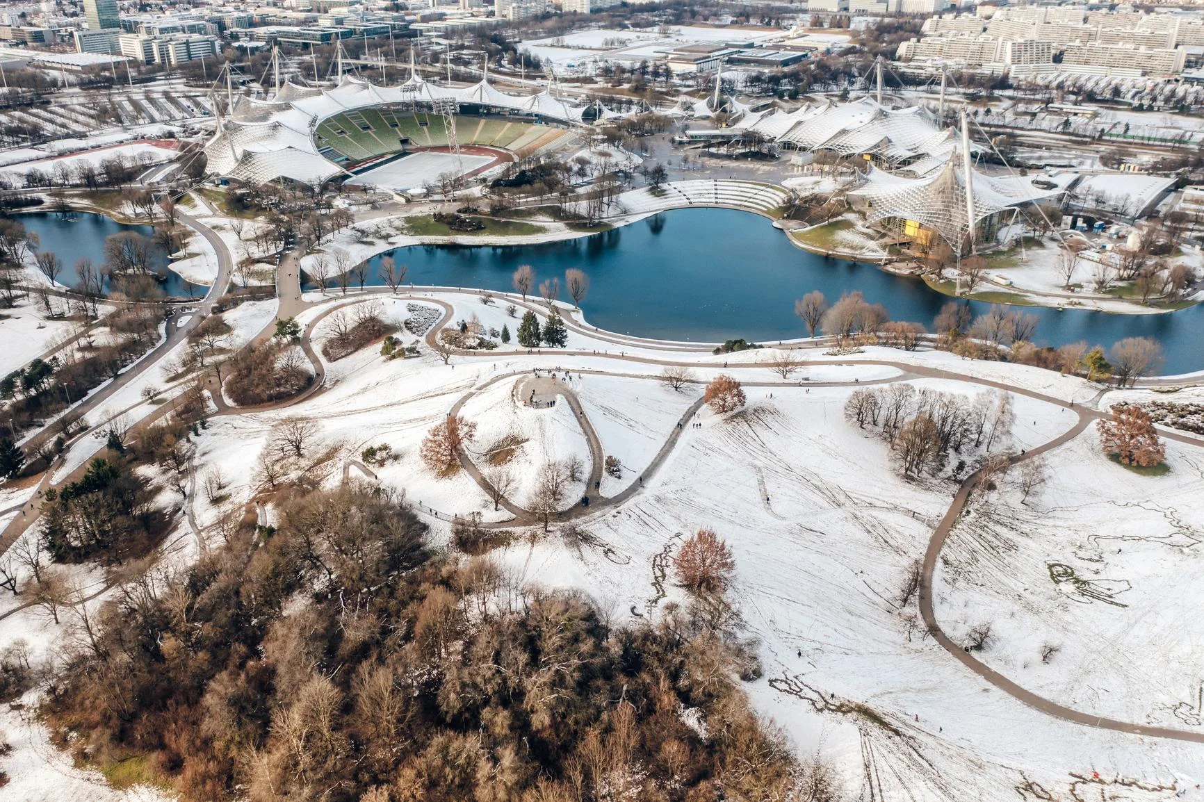 With its height of 60 metres, the summit is easy to reach on this relaxed mountain tour. From the very top, there is a magnificent view of the Olympic Park, Munich and the Alps. For decades, however, the Olympic Hill has also been a popular destination for enjoying free open-air concerts.