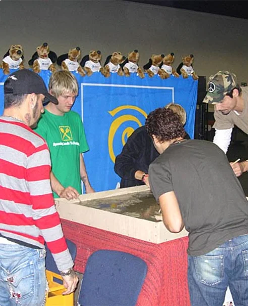 The boy group kept their hands in the wet cement for several minutes to see who got stuck. Their manager took a deep breath. All went well. In contrast, the staff at MOWOS were in a sweat as the OK for the ceremony was not given till 5 p.m. They had just 60 minutes to prepare everything and mix the cement. An absolute record!