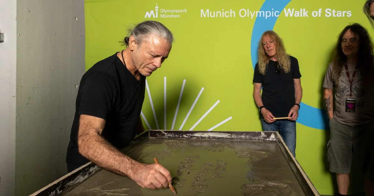 It almost got crowded on the concrete plate: with six hands, the indestructible heavy metal legends of Iron Maiden immortalised themselves on our Walk of Stars at the beginning of August 2023 - 43 years after their premiere in the Olympic Park, where they have become beloved regulars over the decades.