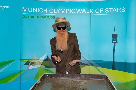 So Billy Gibbons finally used his hands, the founder and frontman of the nothing but resilient bluesrock band ZZ Top, who were already touring around when the “Oberwiesenfeld” was still home to a huge construction site for the forthcoming Olympic Games in 1972. Having fallen in love with Munich and the Bavarian lifestyle many years ago Billy wore his “Trachtenjanker”, a traditional wool jacket he had once bought her. For the benign arrangement of the imprint he took his time und subjoined a bottleneck, a tubular metal slide for the fingers of a guitarist.